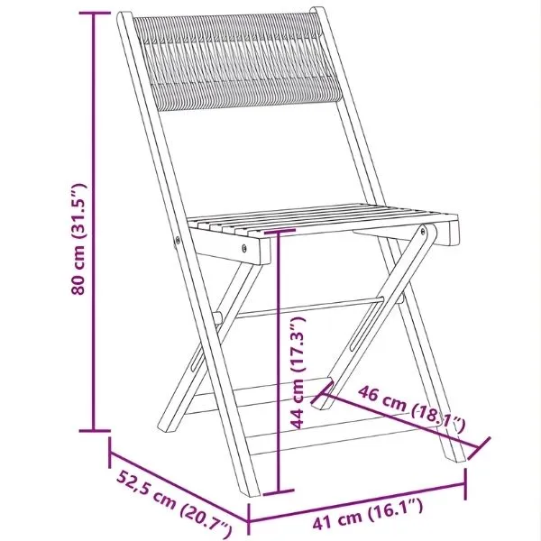 - Dimensions par chaise (dépliée) : 41 cm (L) x 52,5 cm (P) x 80 cm (H)