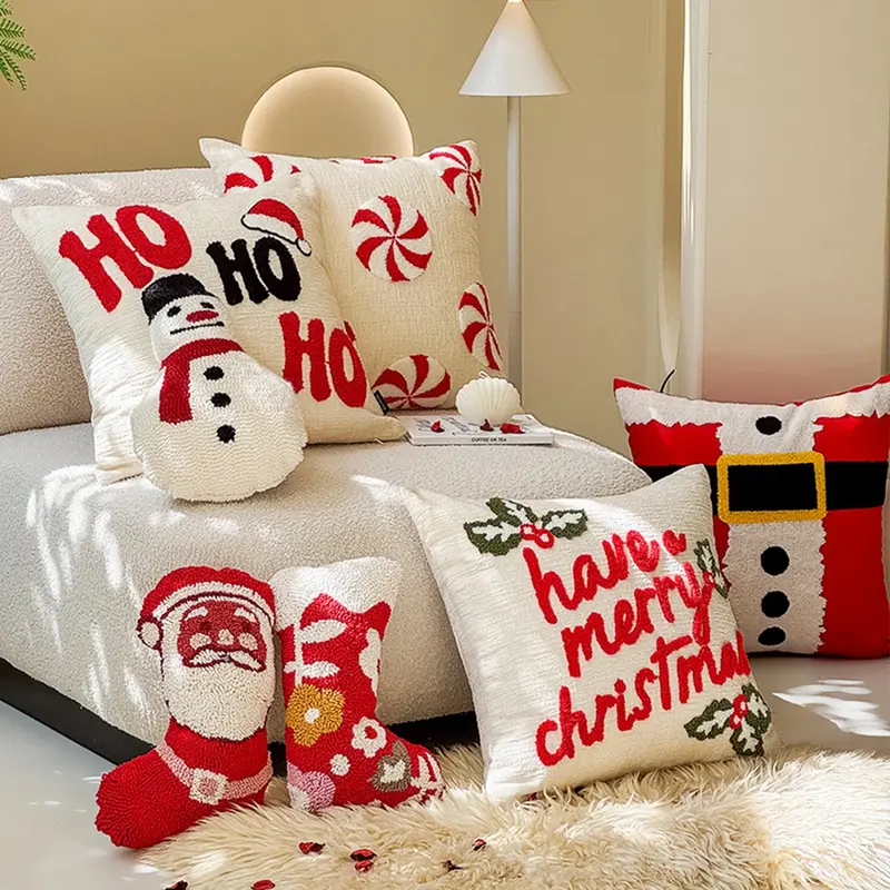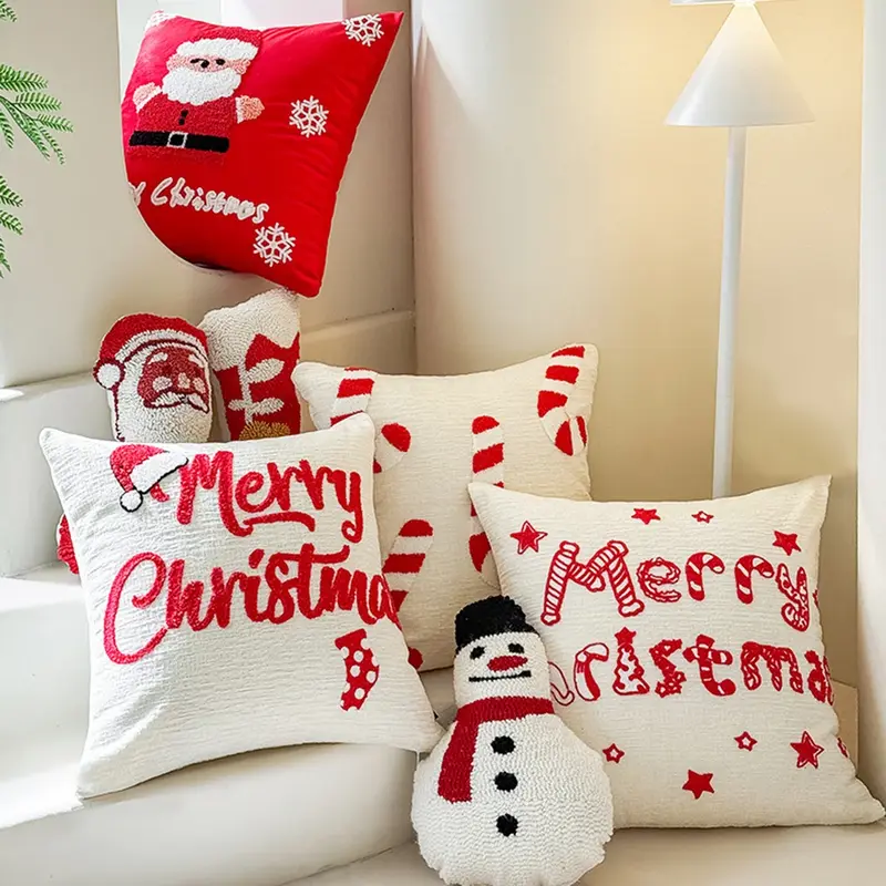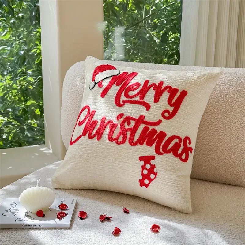 Housse de coussin de Noël décorative 45×45 cm – motif écriture rouge et blanc